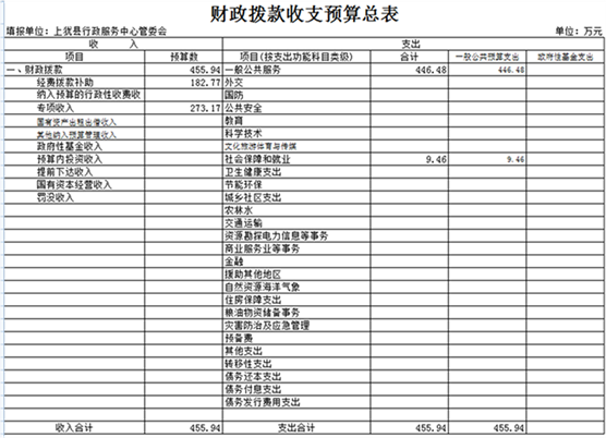 具體支出的情況是:一般公共服務支出446.48萬元;社會保障和就業(yè)支出9.46萬元。