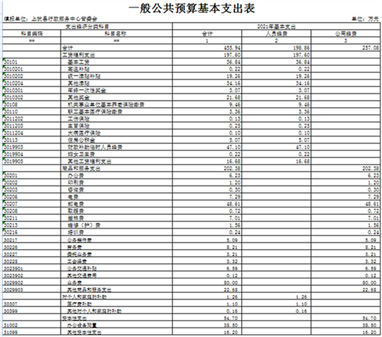 第三部分 上猶縣行政服務中心管理委員會2021年部門預算表
