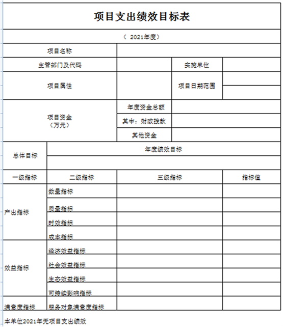 2021年實行績效目標管理的項目 0 個(部門預算中30萬元以上的,且進行了績效評審的項目),涉及資金 0 萬元;納入績效目標批復試點的項目 0 個,涉及資金 0 萬元。