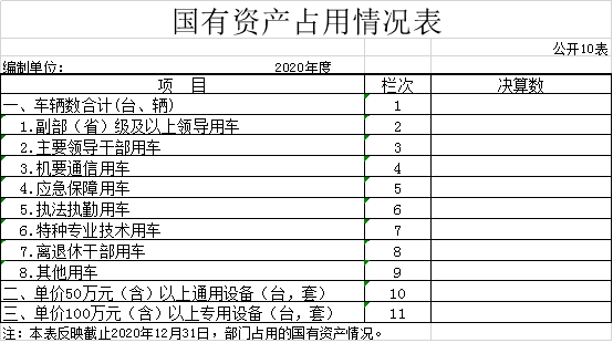 截止2020年12月31日,本部門(單位)國有資產(chǎn)占用情況見公開10表《國有資產(chǎn)占用情況表》。