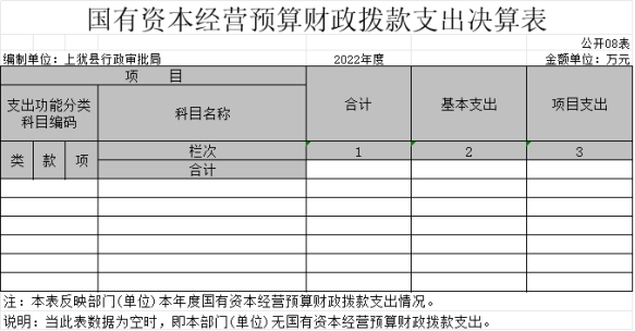 八、國有資本經(jīng)營預(yù)算財政撥款支出決算表