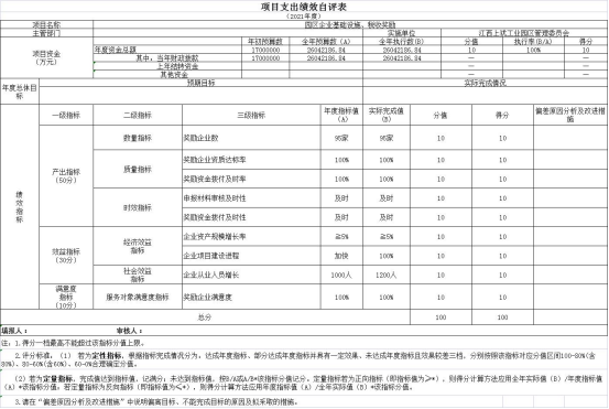 組織對“園區(qū)企業(yè)基礎(chǔ)設(shè)施、稅收獎(jiǎng)勵(lì)”等1個(gè)項(xiàng)目開展了部門評價(jià),涉及一般公共預(yù)算支出0.00萬元,政府性基金預(yù)算支出519.56萬元,國有資本預(yù)算支出0.00萬元。從評價(jià)情況來看,將項(xiàng)目支出后的實(shí)際狀況與績效目標(biāo)對比,從項(xiàng)目的經(jīng)濟(jì)性、效率性、效益性和可持續(xù)性等方面進(jìn)行量化、具體分析;經(jīng)按“財(cái)政支出績效評價(jià)指標(biāo)體系”進(jìn)行綜合評價(jià),本項(xiàng)目綜合得分100分,評價(jià)等次為“優(yōu)”。