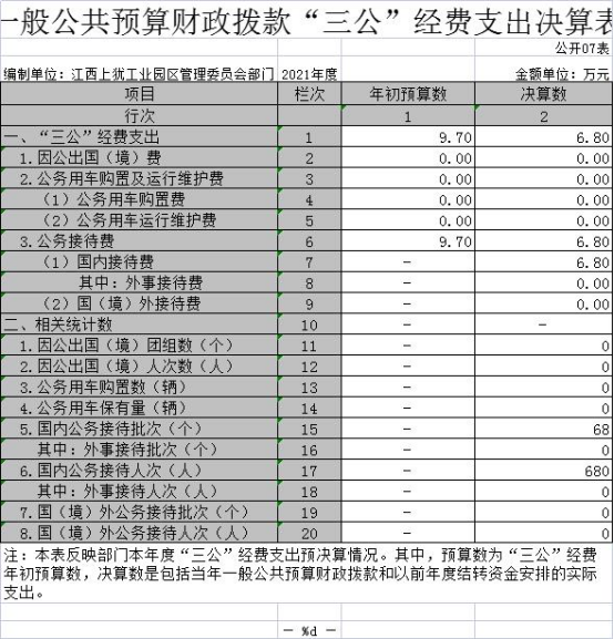 7、“三公”經(jīng)費(fèi):指用一般公共預(yù)算財(cái)政撥款安排的因公出國(境)費(fèi)、公務(wù)用車購置及運(yùn)行維護(hù)費(fèi)和公務(wù)接待費(fèi)。其中,因公出國(境)費(fèi)反映單位公務(wù)出國(境)的國際旅費(fèi)、國外城市間交通費(fèi)、住宿費(fèi)、伙食費(fèi)、培訓(xùn)費(fèi)、公雜費(fèi)等支出;公務(wù)用車購置及運(yùn)行維護(hù)費(fèi)反映單位公務(wù)用車車輛購置支出(含車輛購置稅、牌照費(fèi)),按規(guī)定保留的公務(wù)用車燃料費(fèi)、維修費(fèi)、過橋過路費(fèi)、保險(xiǎn)費(fèi)、安全獎(jiǎng)勵(lì)費(fèi)用等支出;公務(wù)接待費(fèi)反映單位按規(guī)定開支的各類公務(wù)接待(含外賓接待)支出。