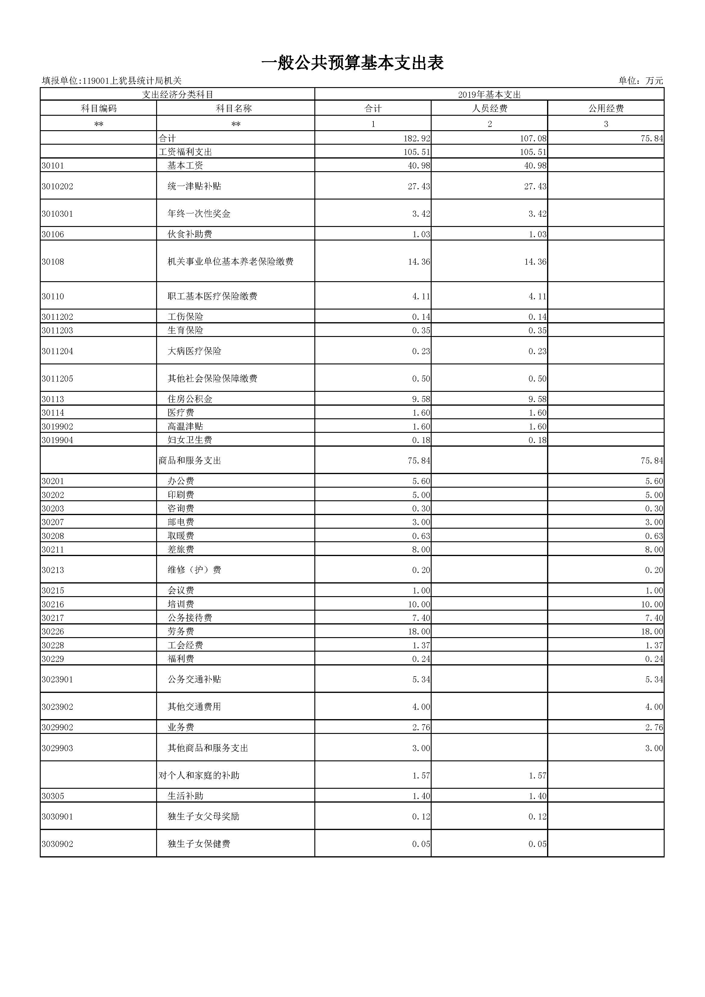上猶縣統(tǒng)計(jì)局2019年部門預(yù)算?