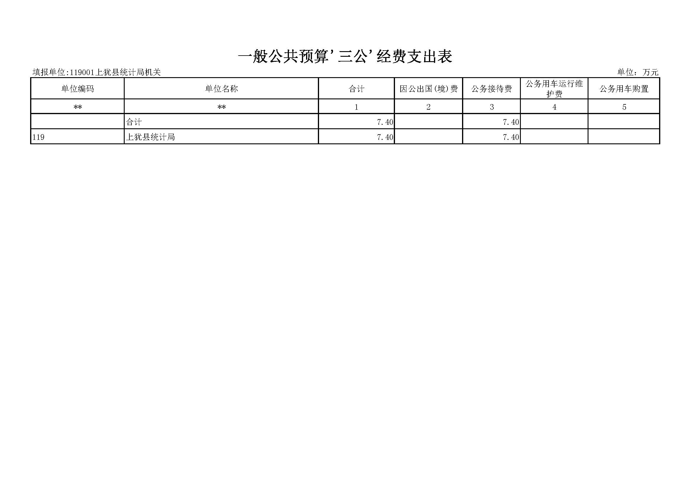 2019年上猶縣統(tǒng)計(jì)局“三公”經(jīng)費(fèi)年初預(yù)算安排7.4萬元。其中:?
