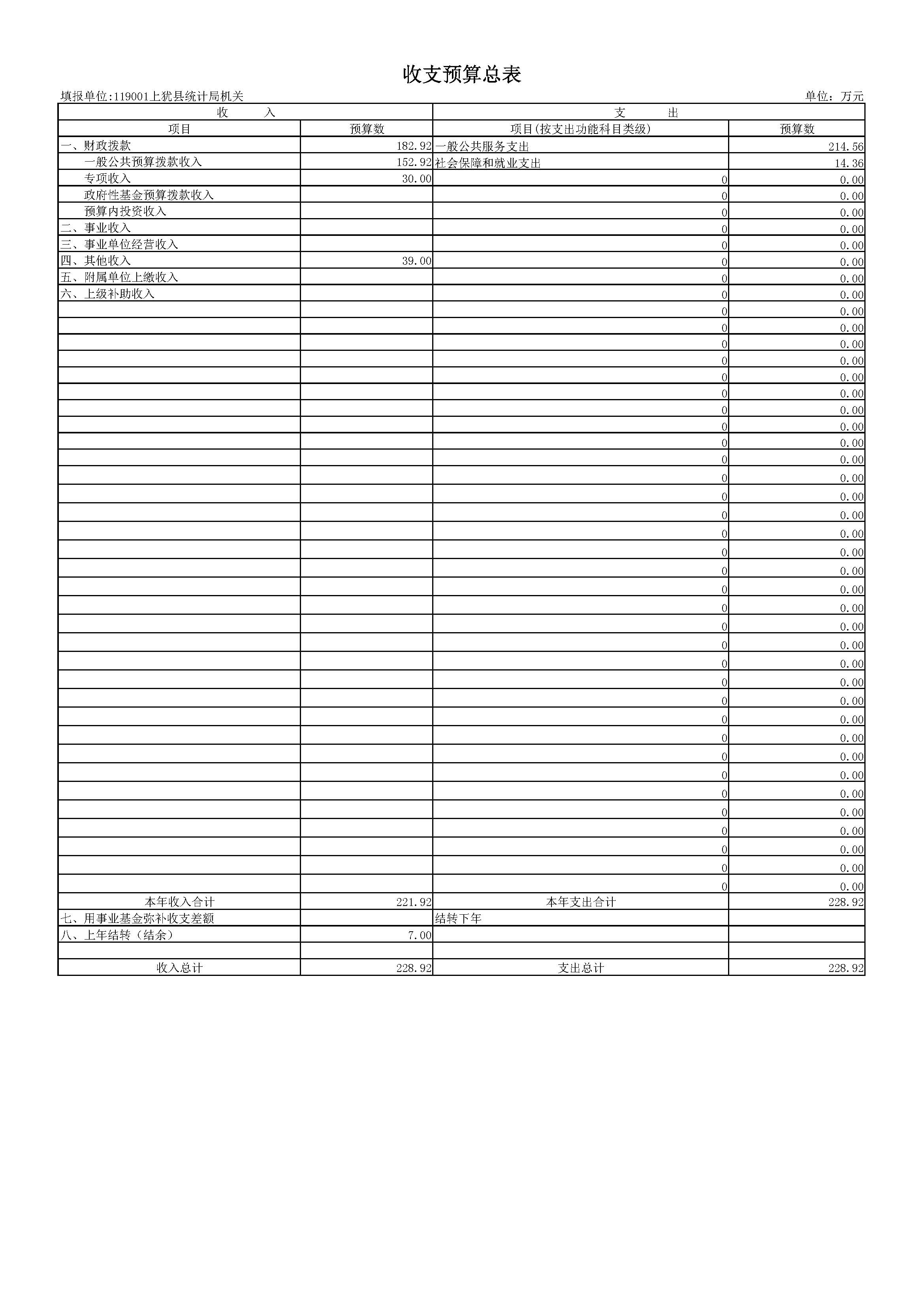 2019年上猶縣統(tǒng)計(jì)局支出預(yù)算總額為228.92萬元,較上年增長(zhǎng)4.77%,其中: