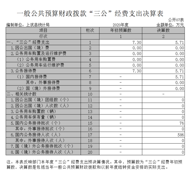 十六、“三公”經(jīng)費:指各部門因公出國(境)費、公務(wù)用車購置及運行費和公務(wù)接待費。其中,因公出國(境)費指單位公務(wù)出國(境)的住宿費、旅費、伙食補助費、雜費、培訓(xùn)費等支出;公務(wù)用車購置及運行費指單位公務(wù)用車購置費及租用費、燃料費、維修費、過路過橋費、保險費、安全獎勵費用等支出;公務(wù)接待費指單位按規(guī)定開支的各類公務(wù)接待(含外賓接待)支出。