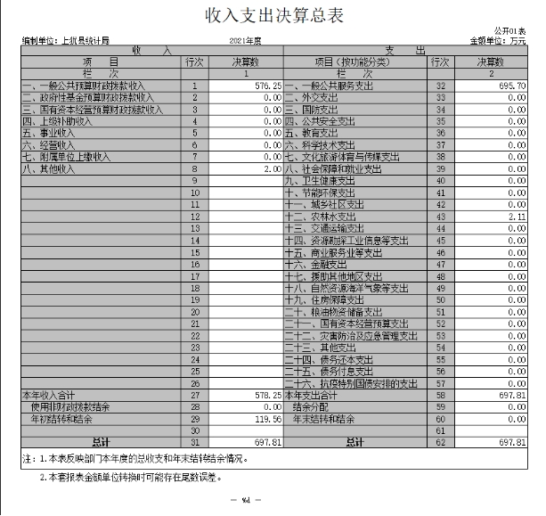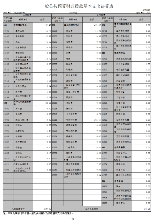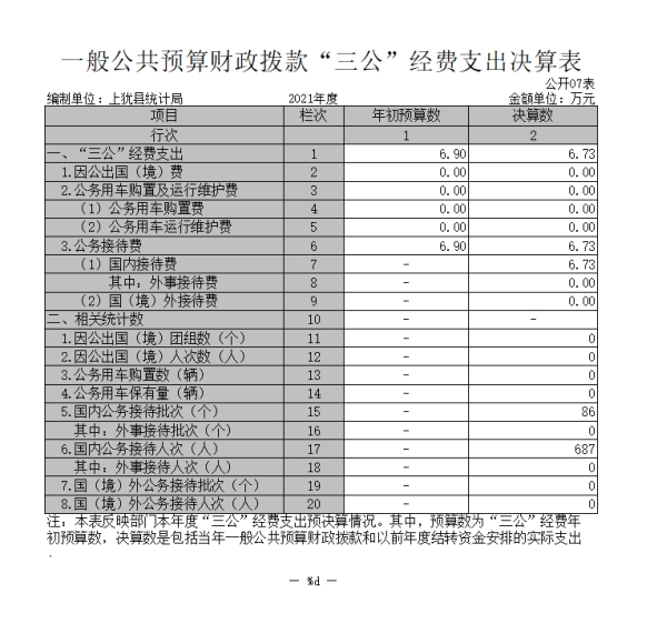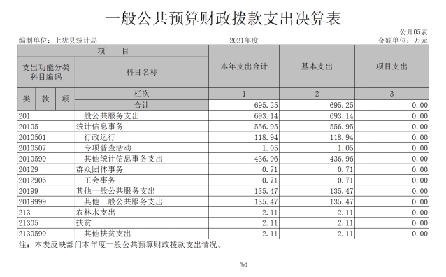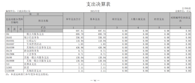 上猶縣統(tǒng)計(jì)局2021年度部門決算