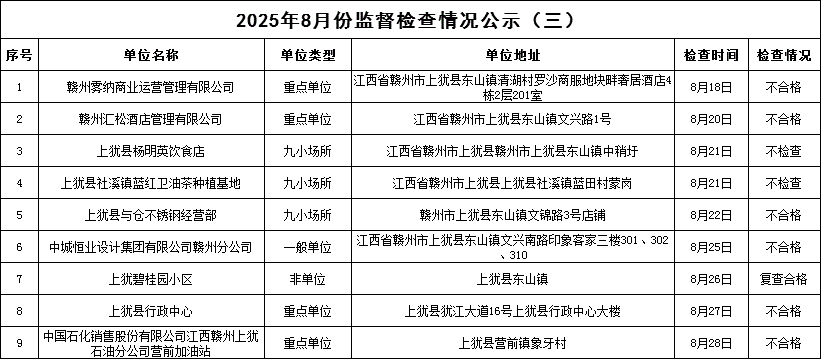 2025年8月份監(jiān)督檢查情況公示(三)