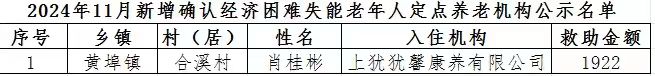 根據(jù)《江西省民政廳江西省財(cái)政廳關(guān)于做好中央財(cái)政支持經(jīng)濟(jì)困難失能老年人集中照護(hù)服務(wù)工作的通知》(贛民規(guī)字〔2023〕11號(hào))文件精神,為進(jìn)一步做好經(jīng)濟(jì)困難失能老年人集中照護(hù)服務(wù)監(jiān)督管理工作,經(jīng)救助對(duì)象申請(qǐng)、第三方機(jī)構(gòu)評(píng)估、入住養(yǎng)老機(jī)構(gòu)、縣民政部門(mén)審核,現(xiàn)將2024年11月份新增經(jīng)濟(jì)困難失能老年人入住定點(diǎn)養(yǎng)老機(jī)構(gòu)情況予以公示,公示時(shí)間為7個(gè)工作日。若對(duì)公示名單有異議,請(qǐng)?jiān)诠酒陂g向縣紀(jì)委或縣民政局反映或舉報(bào)。