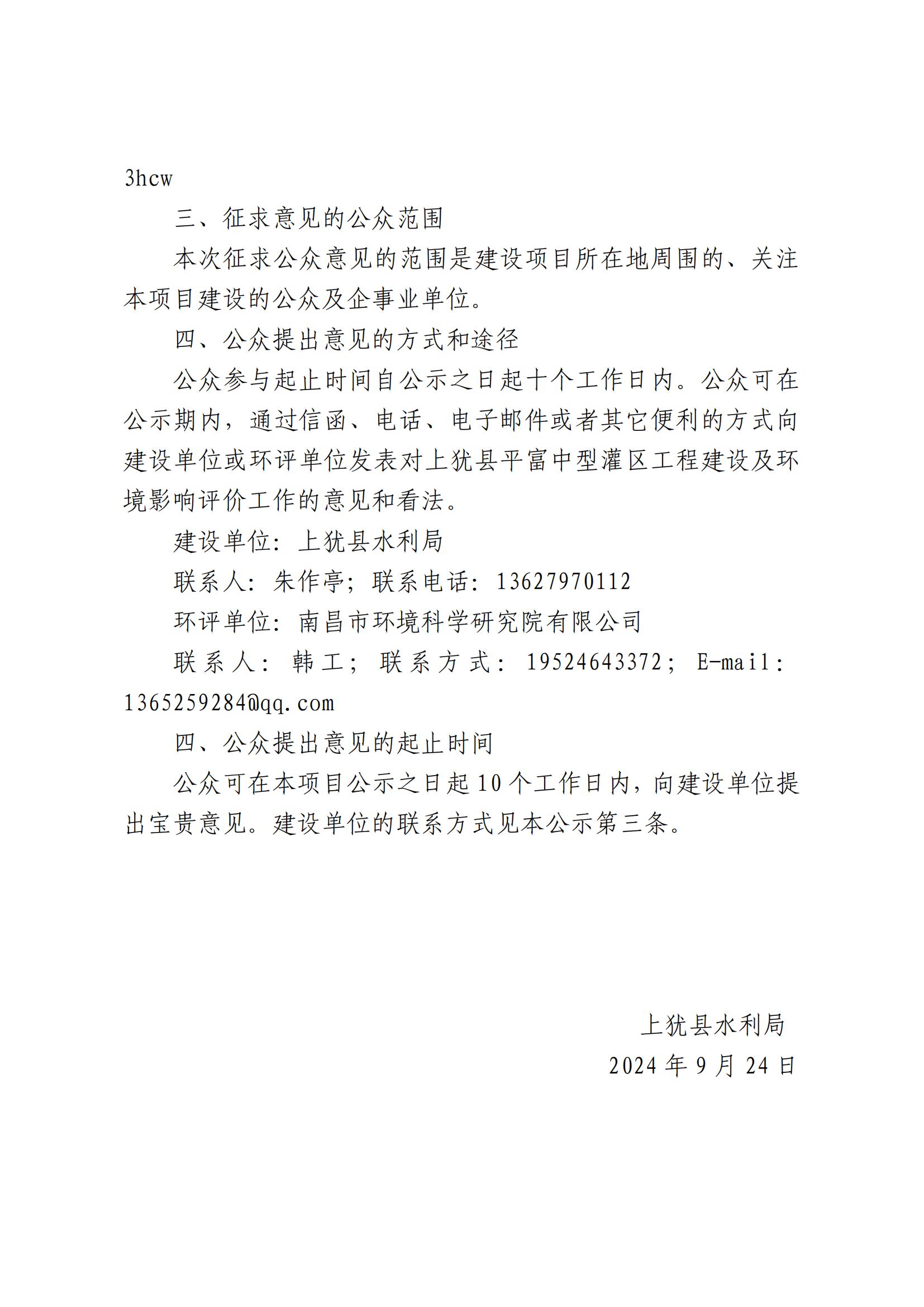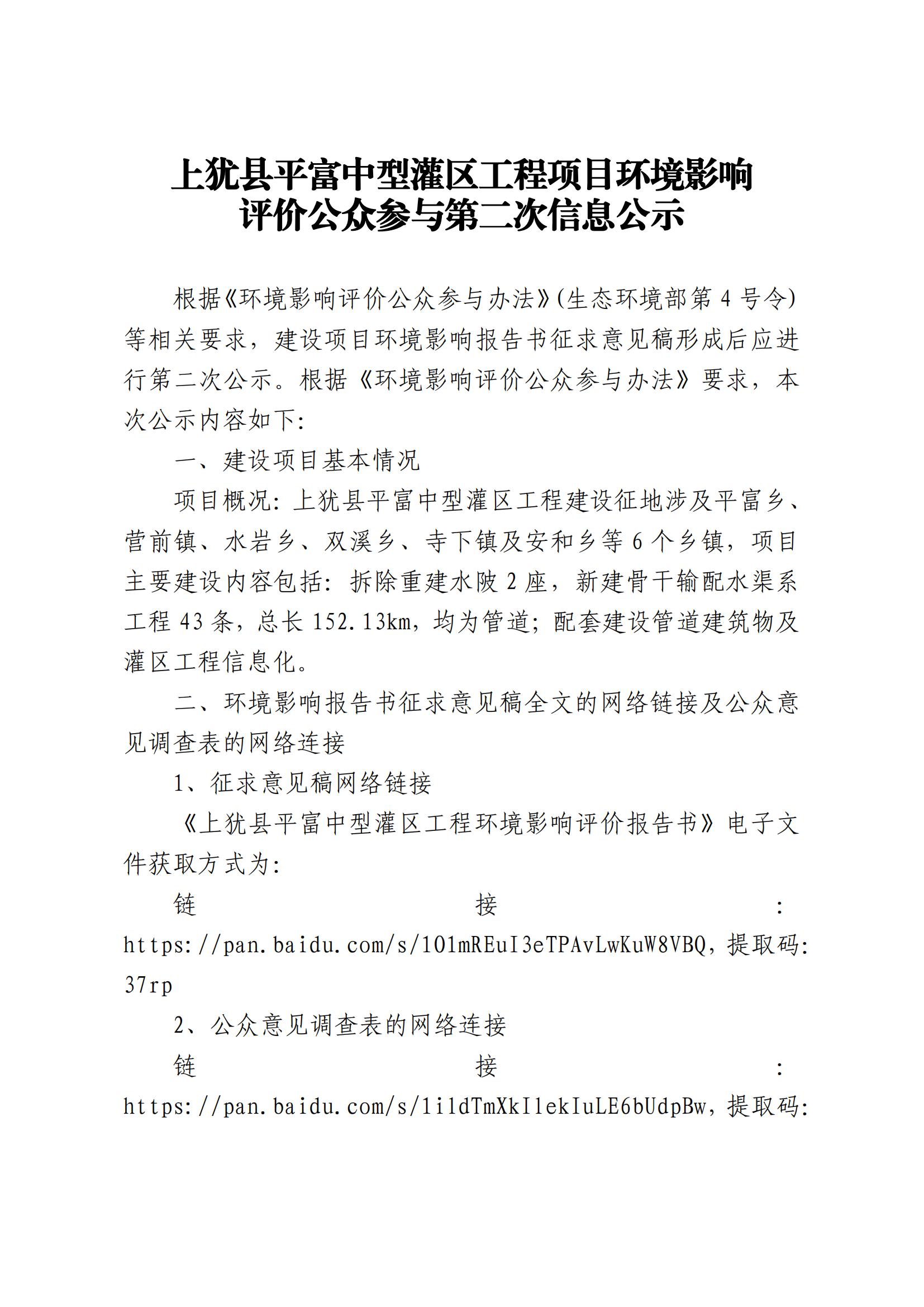 上猶縣平富中型灌區(qū)工程項目環(huán)境影響評價公眾參與第二次信息公示