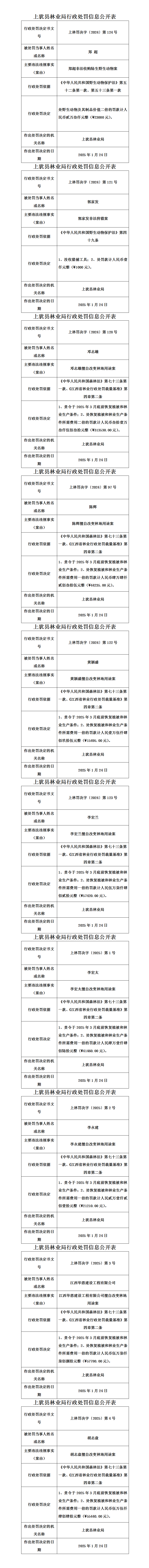 上猶縣林業(yè)局行政處罰信息公開(kāi)表