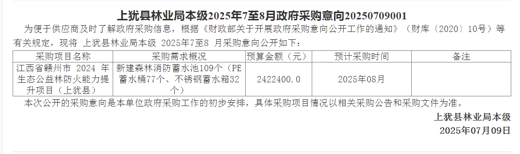 上猶縣林業(yè)局本機(jī)2025年7至8月政府采購意向