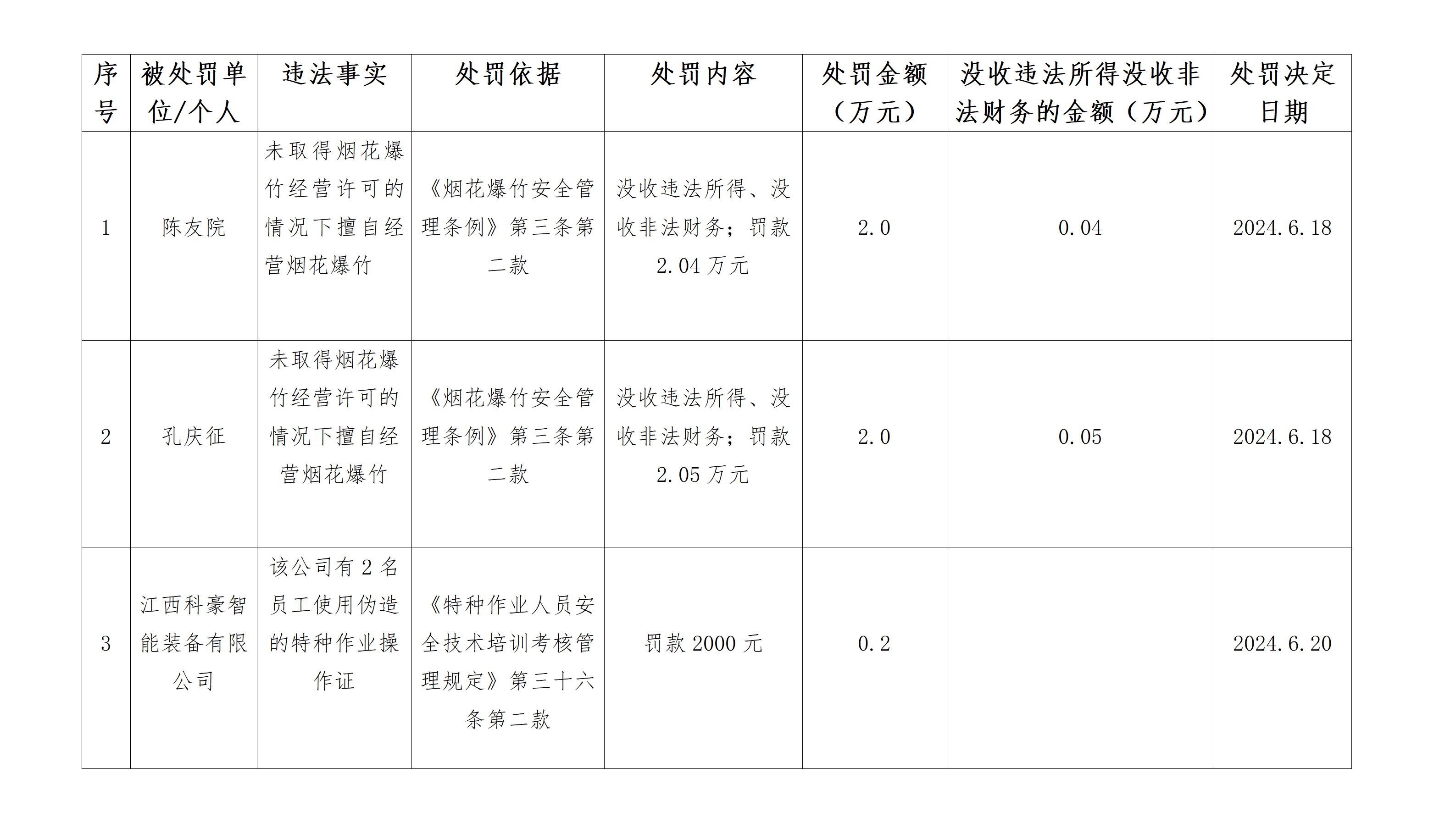 上猶縣應(yīng)急管理局行政處罰公示(2024.6.21)