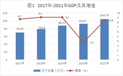 經(jīng)初步核算,全年全縣地區(qū)生產(chǎn)總值(GDP)104.79億元,比上年增長8.4%,兩年平均增長6.0%。其中,第一產(chǎn)業(yè)增加值15.68億元,增長5.7%;第二產(chǎn)業(yè)增加值40.44億元,增長8.9%;第三產(chǎn)業(yè)增加值48.67億元,增長9.0%。三次產(chǎn)業(yè)結(jié)構(gòu)由2020年的16.5:36.7:46.8調(diào)整為15.0:38.6:46.4。三次產(chǎn)業(yè)對(duì)GDP增長的貢獻(xiàn)率分別為11.1%、38.7%和50.2%。非公有制經(jīng)濟(jì)增加值69.70億元,增長9.9%。