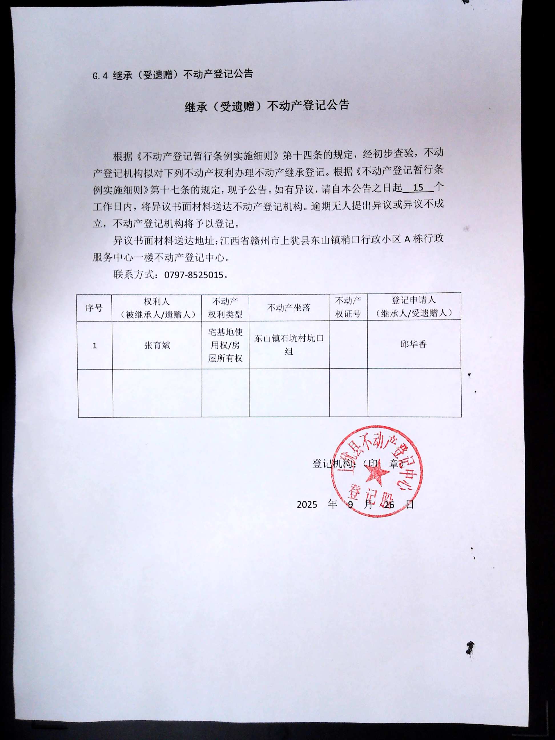 繼承(受遺贈(zèng))不動(dòng)產(chǎn)登記公告(張育斌)