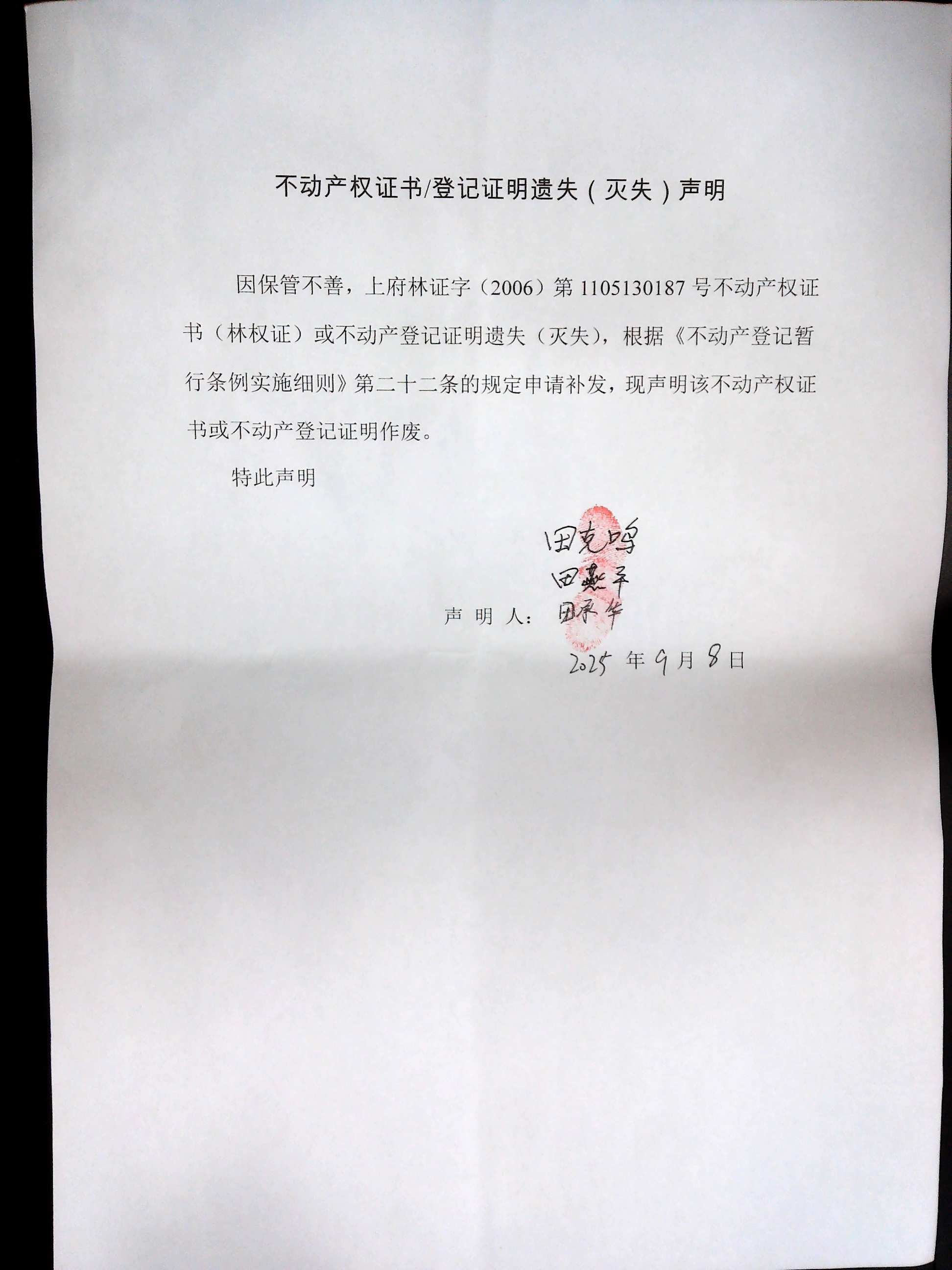 遺失公告(田克慶)