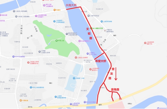 文韜路、水南大橋、希望大橋、登龍路、豪角路。