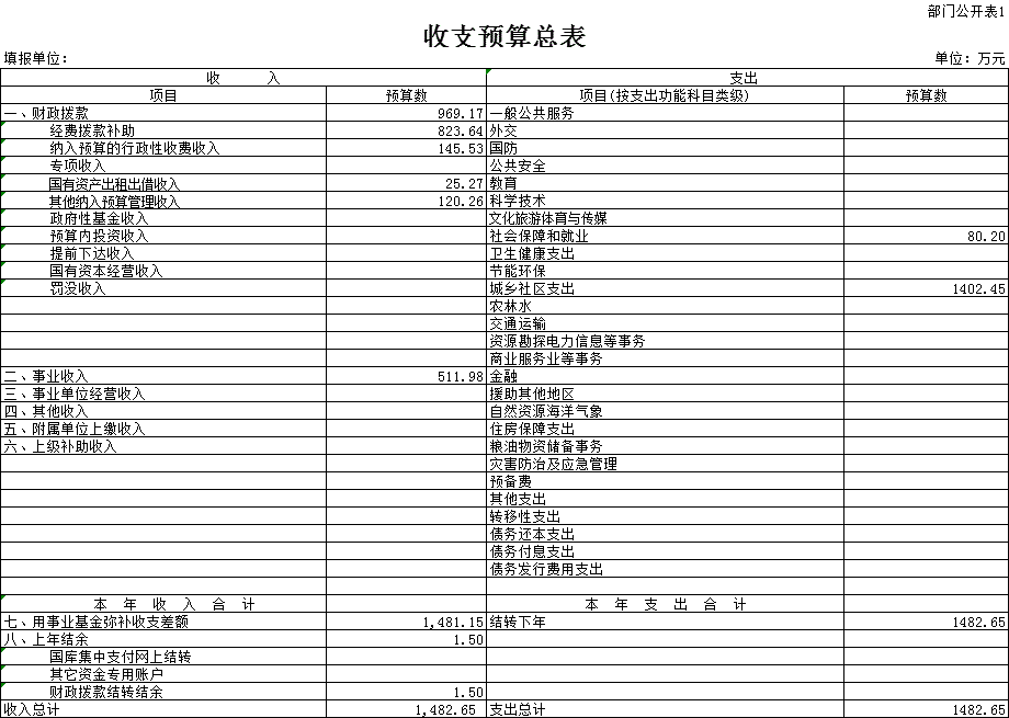 七、用事業(yè)基金彌補(bǔ)收支差額 | 1,481.15 | 結(jié)轉(zhuǎn)下年 | 1482.65 |