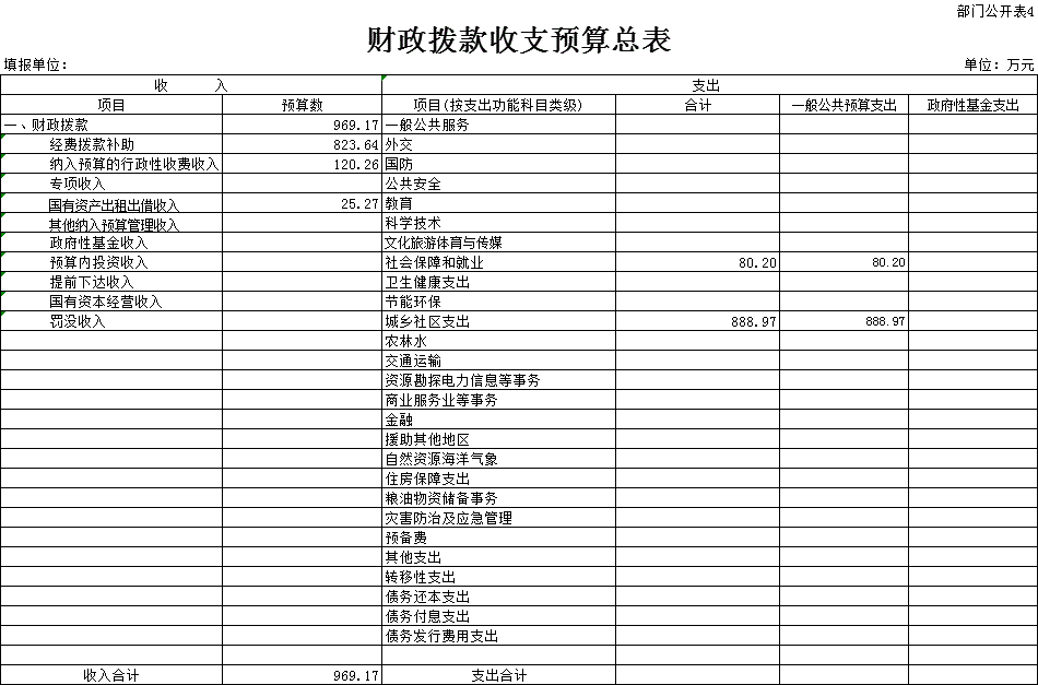 一、財(cái)政撥款 | 969.17 | 一般公共服務(wù) | |