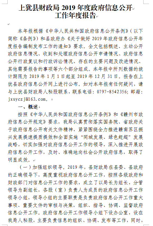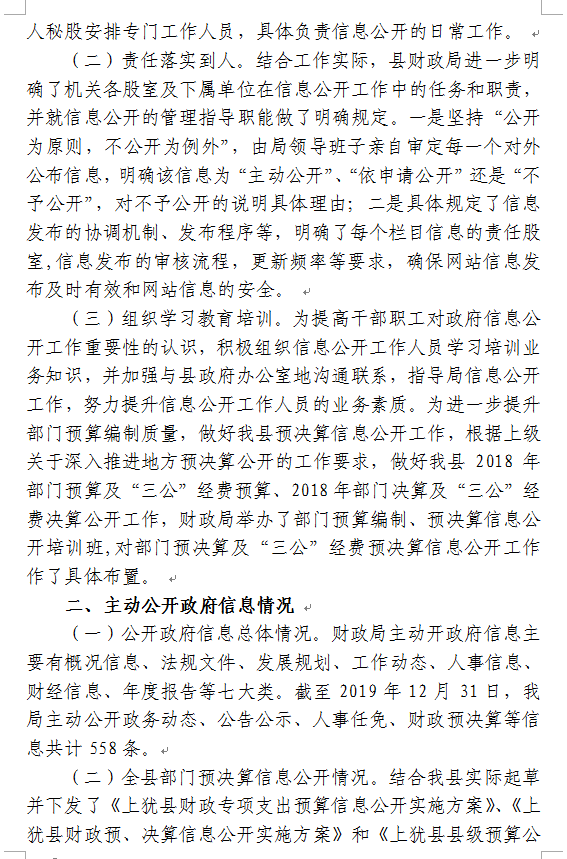 上猶縣財(cái)政局2019年度政府信息公開(kāi)工作年度報(bào)告