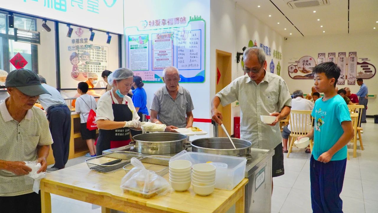 縱觀整個食堂,整齊擺放的桌椅間,市民百態(tài)皆含暖意:或獨身靜坐,默然品食;或祖孫同堂,添菜遞湯間滿是溫情;或結伴而來,倉促間互相搭把手,笑聲在飯香中流淌。