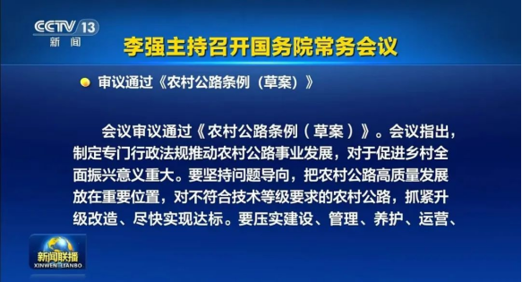 國務院常務會議審議通過《農(nóng)村公路條例(草案)》!