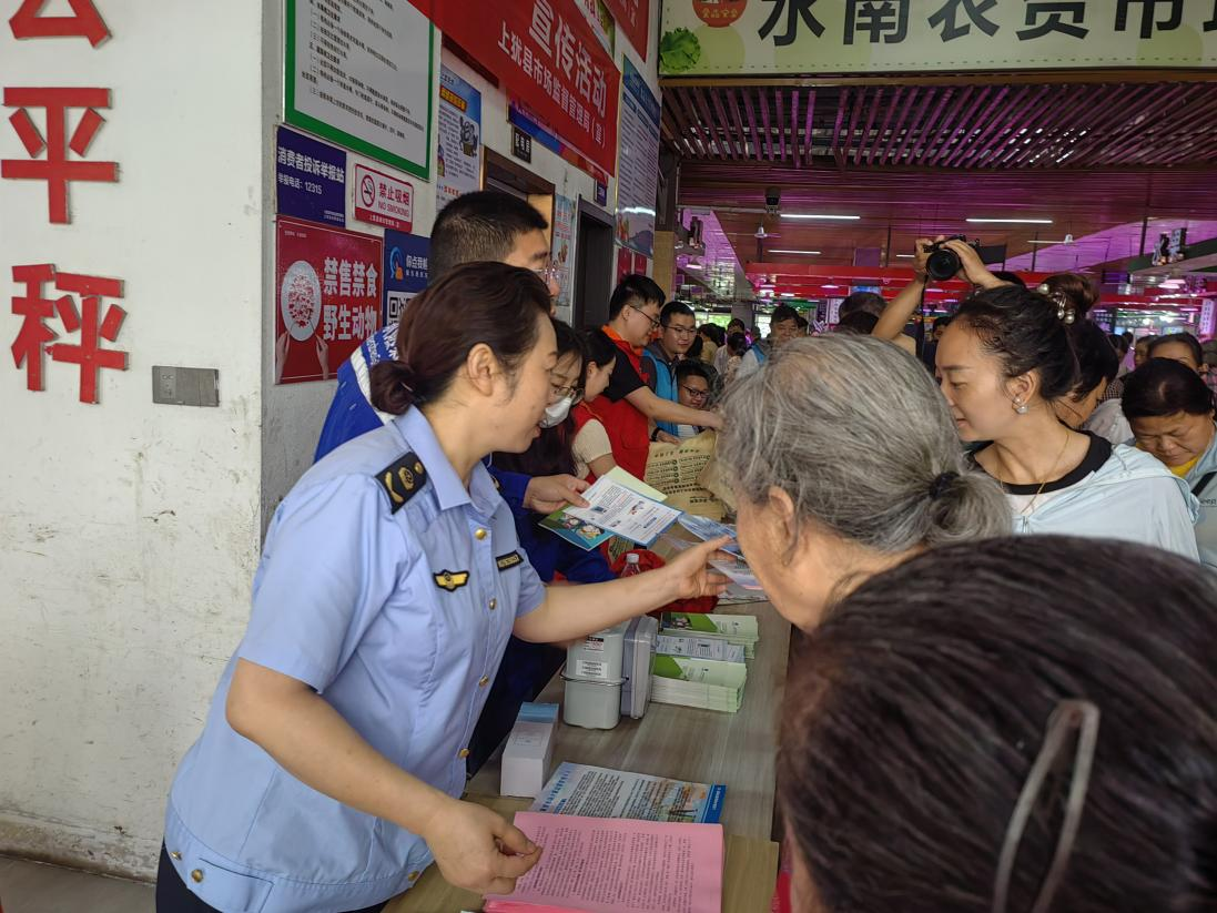 在水南農(nóng)貿(mào)市場,上猶縣市場監(jiān)管局工作人員通過懸掛橫幅、發(fā)放宣傳手冊、設(shè)置咨詢臺等方式,現(xiàn)場展示了公平秤、血壓計、民用“三表”等常見計量器具,向市民講解電子秤、水表、電表、燃氣表等常見設(shè)備的計量原理、常見問題及維權(quán)渠道,現(xiàn)場發(fā)放《計量知識宣傳手冊》等資料600余份,解答群眾疑問150余人次,在市場內(nèi)還隨機抽查12臺電子秤,當場指導糾正3起計量偏差問題。