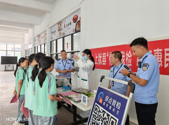 9月9日,上猶縣市場(chǎng)監(jiān)督管理局走進(jìn)上猶縣第二中學(xué),組織開(kāi)展食品安全“你送我檢”快速檢測(cè)便民服務(wù)活動(dòng),以科技手段筑牢校園食品安全防線,用實(shí)際行動(dòng)回應(yīng)廣大家長(zhǎng)和師生的關(guān)切。
