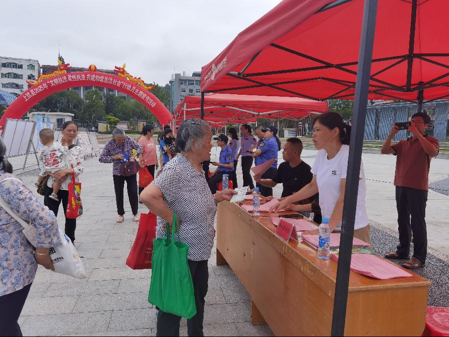 活動現(xiàn)場氣氛熱烈,縣農(nóng)業(yè)農(nóng)村局的工作人員早早布置好宣傳展臺,通過發(fā)放通俗易懂的宣傳手冊、設(shè)置現(xiàn)場咨詢臺等方式,主動向過往群眾宣傳農(nóng)業(yè)農(nóng)村領(lǐng)域的行政執(zhí)法相關(guān)政策。其中,針對《上猶縣輕微違法行為不予處罰清單(第一批)》這一與群眾生產(chǎn)生活密切相關(guān)的政策,工作人員進(jìn)行了重點解讀——他們結(jié)合農(nóng)業(yè)生產(chǎn)中常見的輕微違規(guī)案例,用平實的語言講解清單中明確的不予處罰情形、適用條件及法律依據(jù),讓群眾清楚了解哪些行為在特定情況下可免于處罰,既消除了大家對政策的模糊認(rèn)知,也讓“柔性執(zhí)法”“過罰相當(dāng)”的理念深入人心。