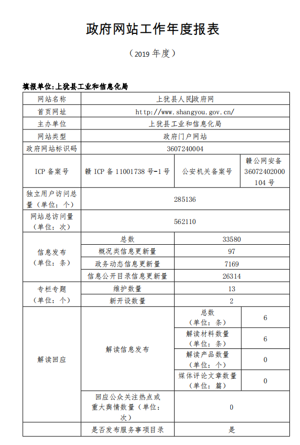 2019年政府網(wǎng)站工作年度報(bào)表