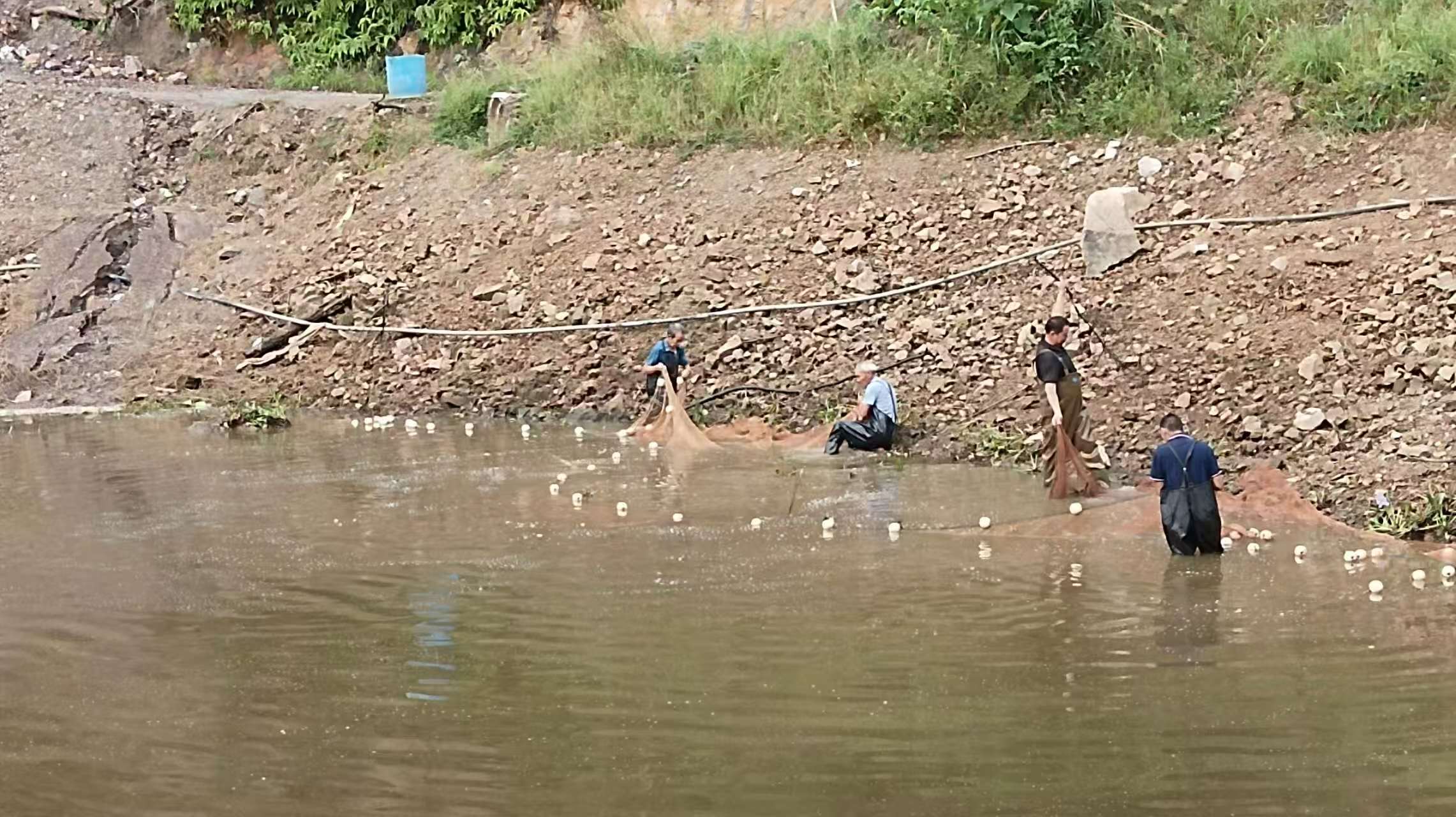 9月8日早,石坑村組織群眾對東坑水庫進行撈魚清淤清庫,保障東坑水庫民生項目順利實施。
