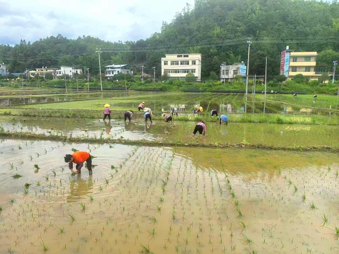 當前,正值水稻制種移栽的關(guān)鍵時節(jié),在寺下鎮(zhèn)的田間地頭,數(shù)十名農(nóng)戶戴著草帽、彎著腰,正有條不紊地將嫩綠的秧苗插入水田里,繪成一幅生機勃勃的“農(nóng)耕畫卷”。